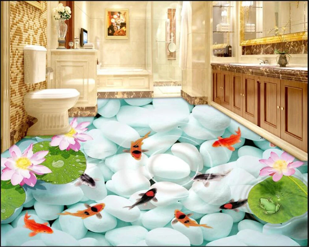 Us 16 74 46 Off Beibehang High End Beautiful 3d Wallpaper Definition Lotus Koi Nine Fish Figure Lotus Pond 3d Flooring Painting Papel De Parede In