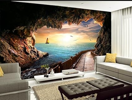 Lwcx Custom 3d Wallpaper Cave Sea View Beautiful Sunset