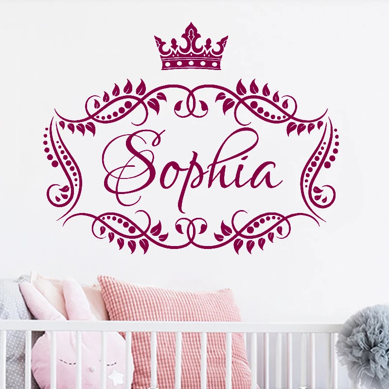Us 5 98 25 Off Girl Princess Crown Custom Name Wall Decal Vinyl Lettering Mural Beautiful Girls Room Decor Wallpapers Personalized Name Lc1219 In