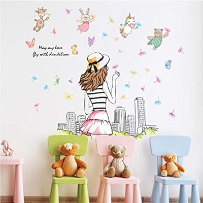 Wall Sticker Beautiful Dandelion Girl Cartoon Animals